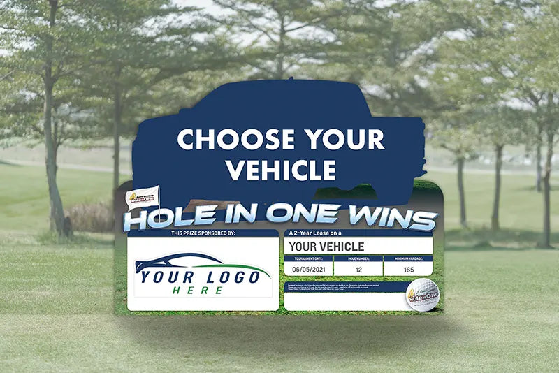 🞧Just as every dealership showroom looks immaculate, it's our honor to make your company look good on the golf course. The traditional hole in one contest will always be a top contender on the golf tournament contest list. In fact, these holes are such a crowd pleaser that they are now expected at most golf tournaments. If you are wanting your dealership or business to be noticed on the golf course, the hole in one contest is the prime location to place your company’s logo.