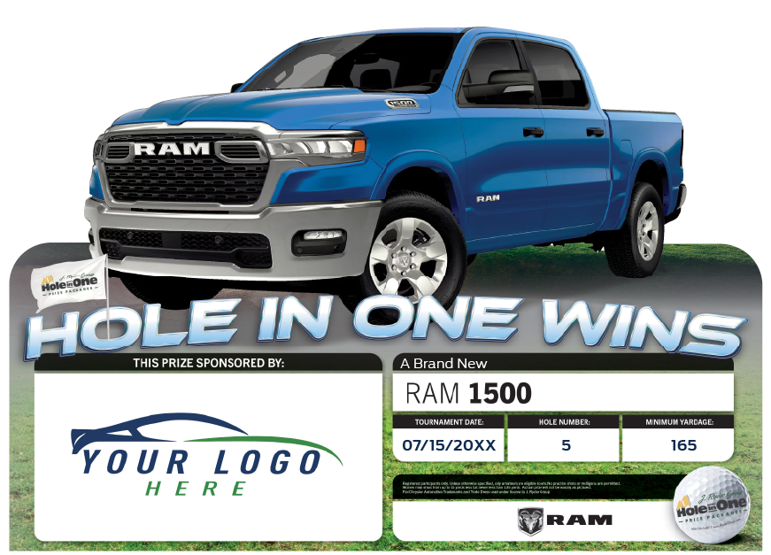 Our Hole In One Prize packages make your brand look GREAT at the course and guarantee you'll be fully covered when someone hits a hole in one at the golf tournaments you sponsor.